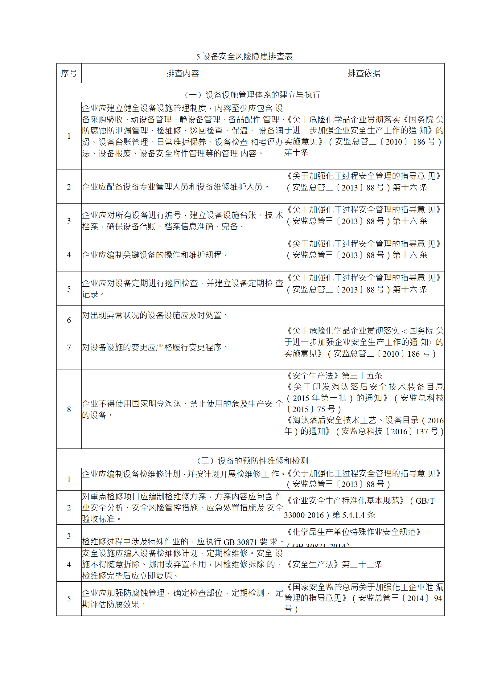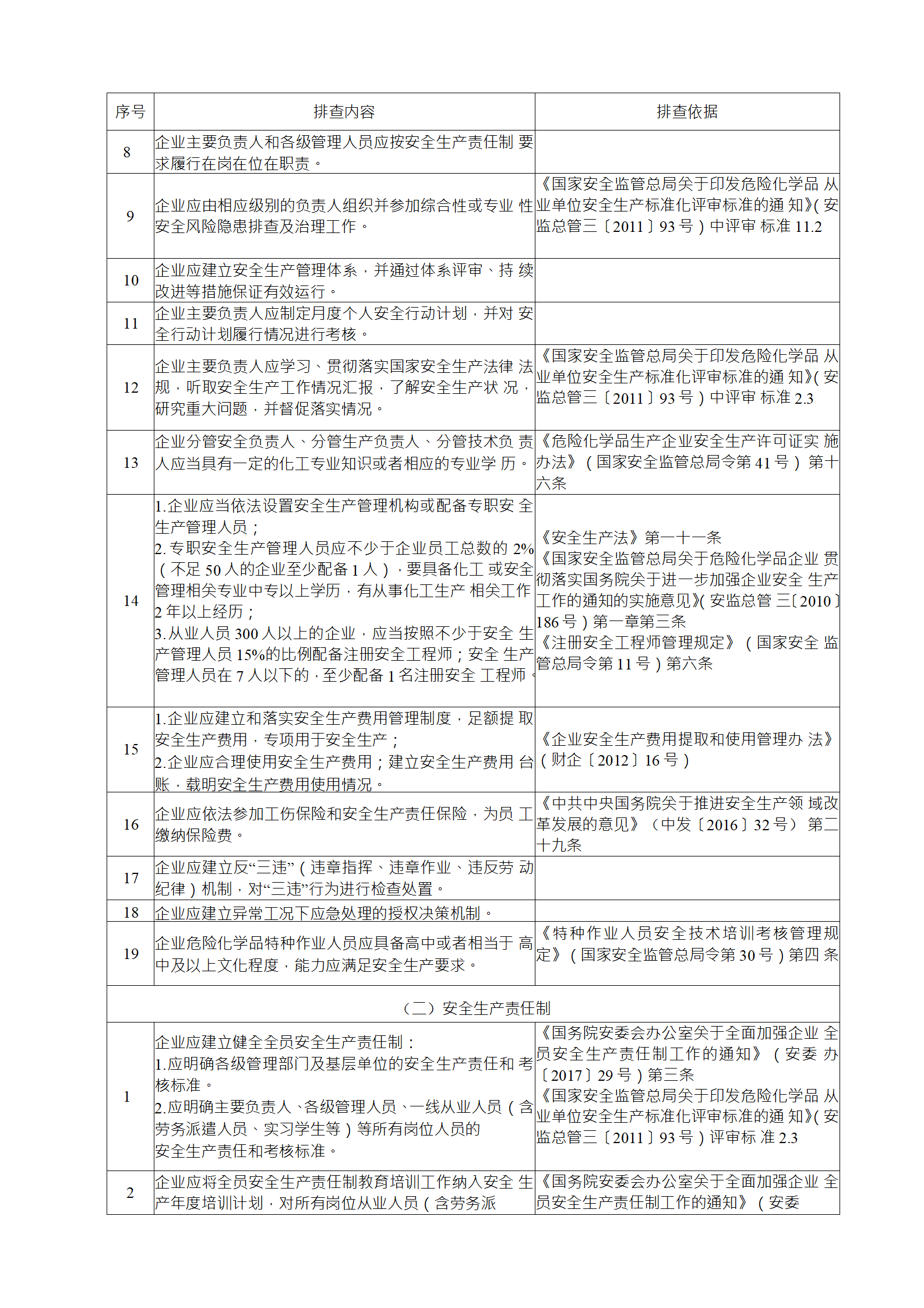 (2)綜合性排查是指以安全生產(chǎn)責(zé)任制、各項(xiàng)專業(yè)管理制 度、安全生產(chǎn)管理制度和化工過(guò)程安全管理各要素落實(shí)情況為重點(diǎn)開(kāi)展的全面檢查;