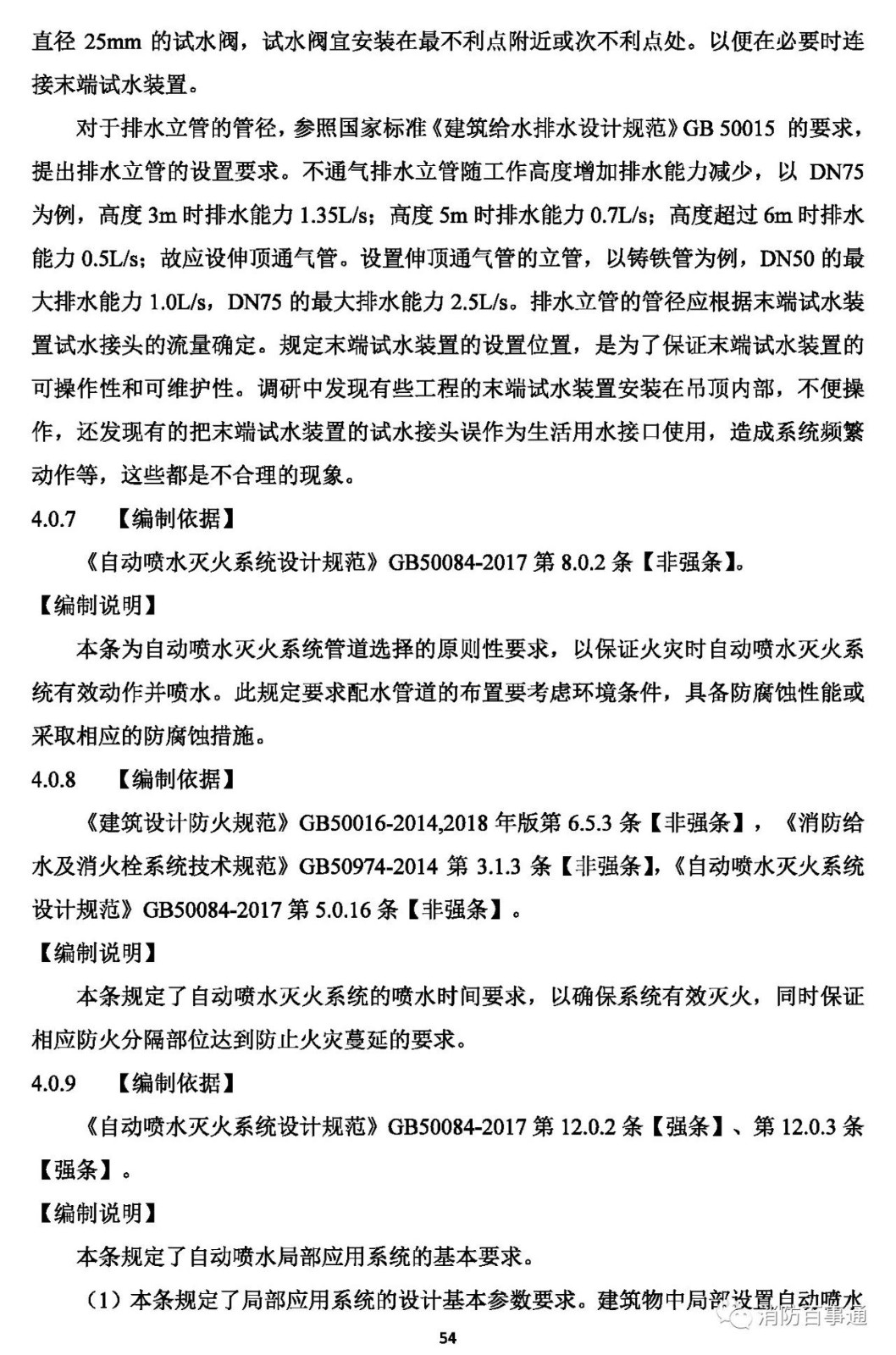 4.0.8 自動(dòng)噴水滅火系統(tǒng)的持續(xù)噴水時(shí)間不應(yīng)小于1.0h 或防火分隔部位的要求耐火時(shí)間。