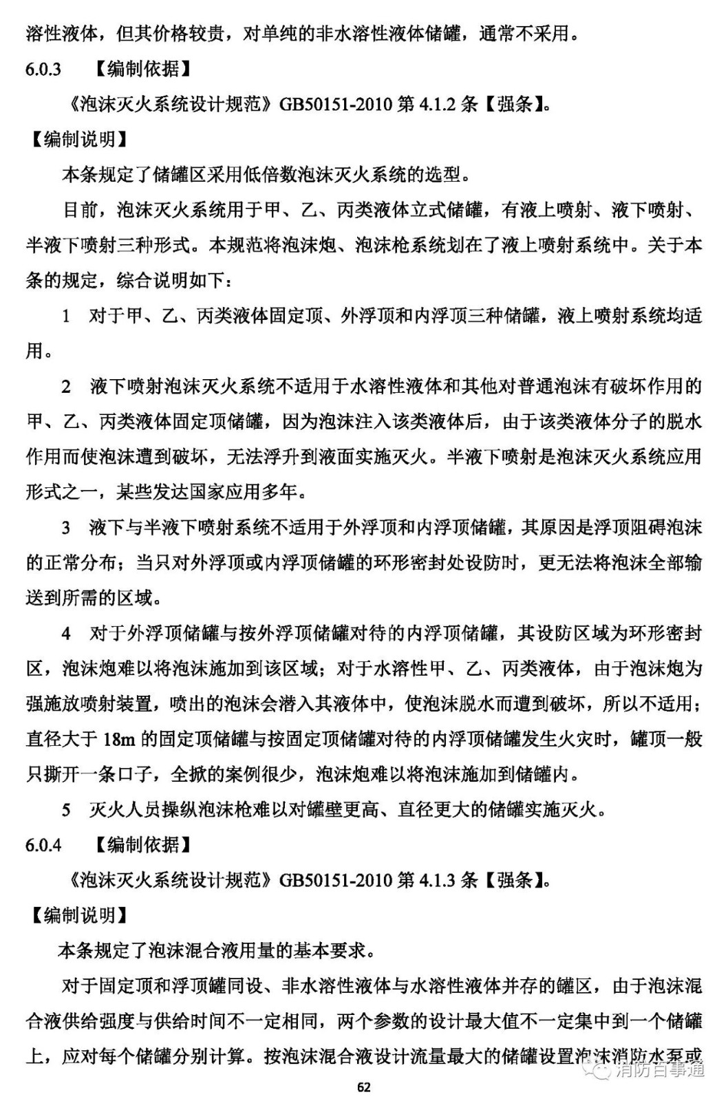 2 對(duì)于水溶性甲、乙、丙類(lèi)液體和其它對(duì)普通泡沫有破壞作用的甲、乙、丙類(lèi)液體固定頂儲(chǔ)罐,應(yīng)為液上噴射系統(tǒng)或半液下噴射系統(tǒng);