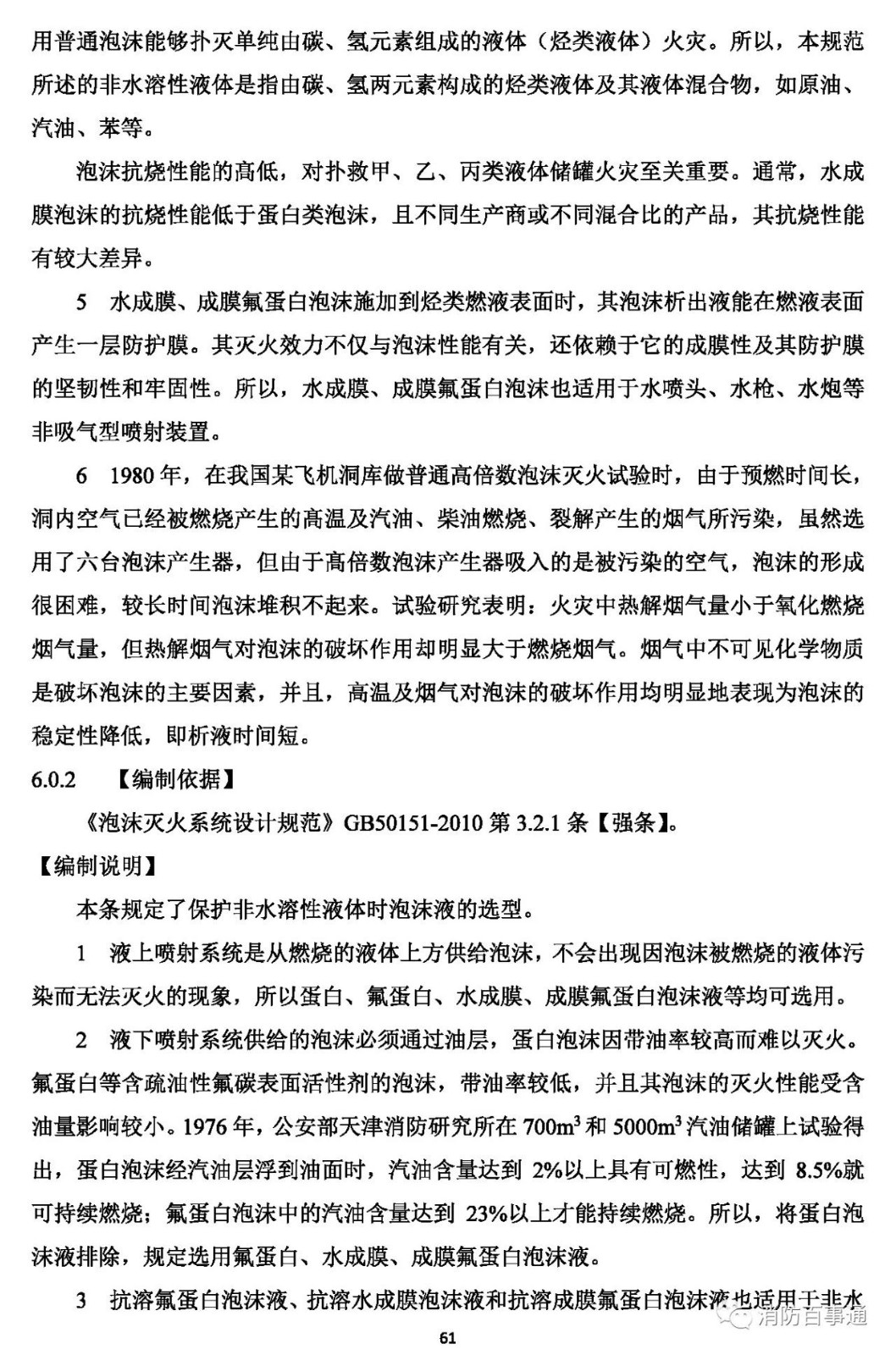 6.0.2 用于保護(hù)非水溶性甲、乙、丙類(lèi)液體儲(chǔ)罐的低倍數(shù)泡沫滅火系統(tǒng),其泡沫液應(yīng)符合下列規(guī)定: