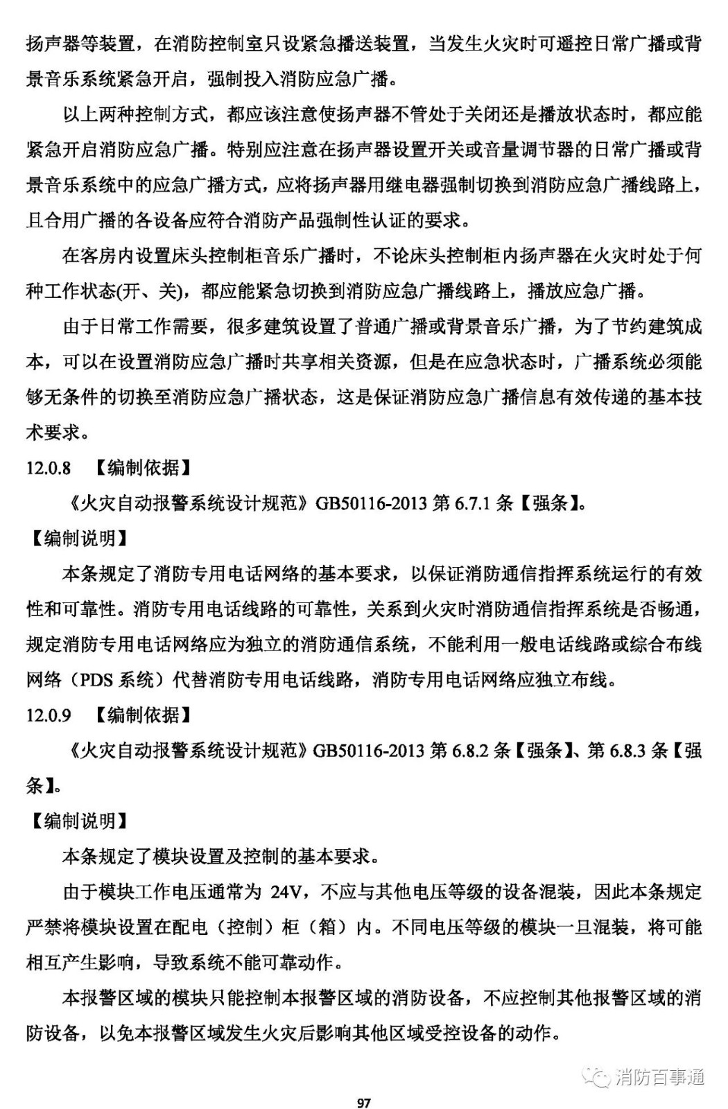 12.0.8 消防專(zhuān)用電話網(wǎng)絡(luò)應(yīng)為獨(dú)立的消防通信系統(tǒng)。