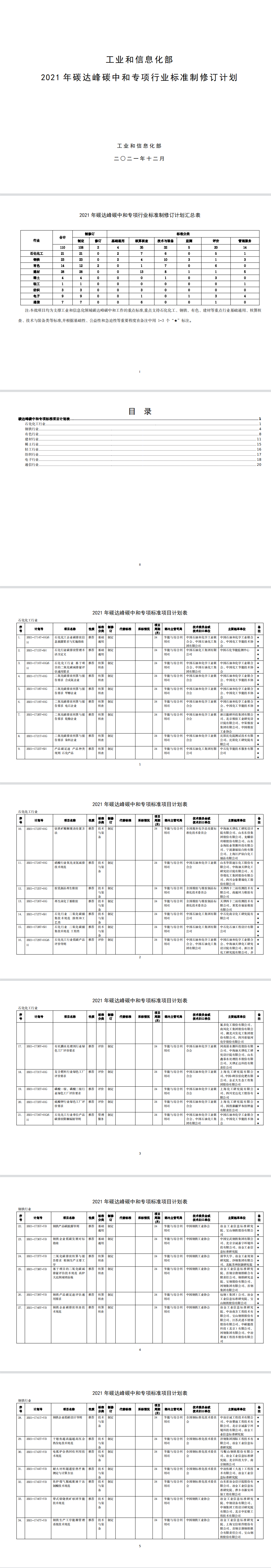 為發(fā)揮標(biāo)準(zhǔn)在推進(jìn)工業(yè)領(lǐng)域碳達(dá)峰碳中和工作的引領(lǐng)和規(guī)范作用,我部編制完成了2021年碳達(dá)峰碳中和專項行業(yè)標(biāo)準(zhǔn)制修訂項目計劃。現(xiàn)印發(fā)給你們,請認(rèn)真組織落實。有關(guān)事項通知如下: