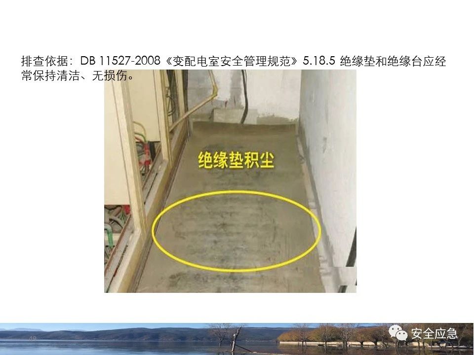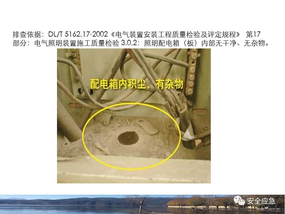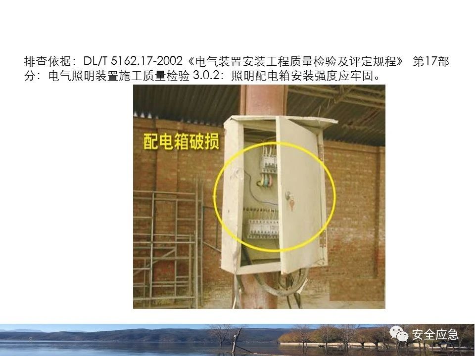 8.1.6規(guī)定配電箱、開(kāi)關(guān)箱周?chē)鷳?yīng)有足夠2人同時(shí)工作的空間和通道,不得堆放任何妨礙操作、維修的物品,不得有灌木、雜草。