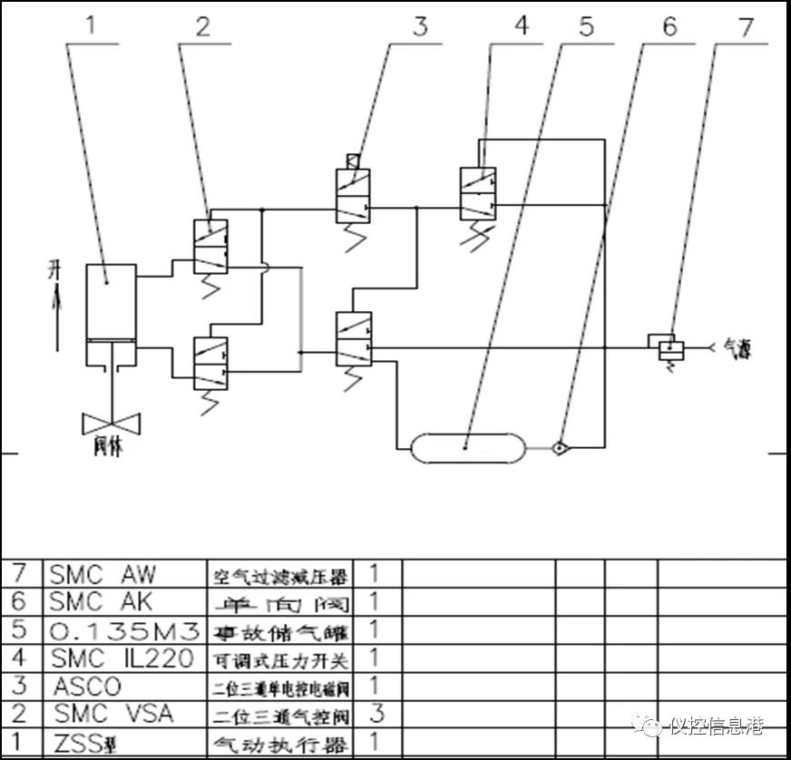 是不是這種閥門最好呢?也不一定。這種結(jié)構(gòu)的閥門最大的弊端是,不好判斷彈簧作用力的可靠性,當(dāng)聯(lián)鎖需要緊急啟動,而動力風(fēng)又中斷的緊急狀態(tài)下,彈簧如果乏力,那閥門會無法關(guān)閉或者打開。而彈簧是否可靠,在正常聯(lián)鎖測試中不好判斷。 常見切斷閥的結(jié)構(gòu)就這三種模式,了解這三種氣缸結(jié)構(gòu)就了解閥門的故障狀態(tài)了嗎?這還遠(yuǎn)遠(yuǎn)不夠。氣缸的動作模式完全由外部氣動元件來控制,而氣控元件的組合根據(jù)聯(lián)鎖的需要千變?nèi)f化。舉幾個簡單的例子: 1、單缸單作用在動力風(fēng)中斷時一定會關(guān)閉或者打開嗎? 大部分聯(lián)鎖閥門在動力風(fēng)中斷時要求關(guān)閉或者打開,但是聯(lián)鎖的設(shè)計一定是可用性和可靠性的綜合考慮。在考慮安全性的同時一定會考慮可用性,且有時候的動力風(fēng)中斷并非全部中斷,而是局部動力風(fēng)管線的受損。關(guān)閉某個切斷閥會造成較大的經(jīng)濟(jì)損失或者給生產(chǎn)帶來次生安全風(fēng)險。這種情況下,一般閥門上會帶有鎖止閥,其作用就是當(dāng)動力風(fēng)壓力降到一定的設(shè)定值時,切斷動力風(fēng),氣缸中的壓力始終推動彈簧使得閥門保持原有狀態(tài)。加上鎖止閥就變?yōu)镕L。什么情況下用到這種閥呢,比如大型的氣體凈化項目,當(dāng)下游生產(chǎn)裝置發(fā)生故障時,需要緊急切斷上游供料閥門,下游裝置全部停工,可能會造成幾千萬的經(jīng)濟(jì)損失。但是動力風(fēng)暫時故障,能在短時間恢復(fù),倒不如設(shè)置成FLC。