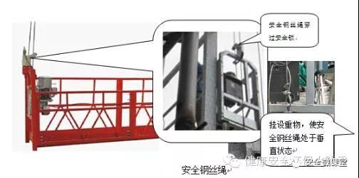 3、吊籃內作業(yè)人員的安全帶應時刻保證掛設在獨立的專用安全繩鎖扣上。