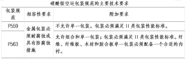 UN編號(hào)1942的硝酸銨在空運(yùn)時(shí),對(duì)照IATA-DGR技術(shù)規(guī)定,可選擇客貨機(jī)和純貨機(jī)兩種方式。當(dāng)用客貨機(jī)運(yùn)輸時(shí),不允許單一包