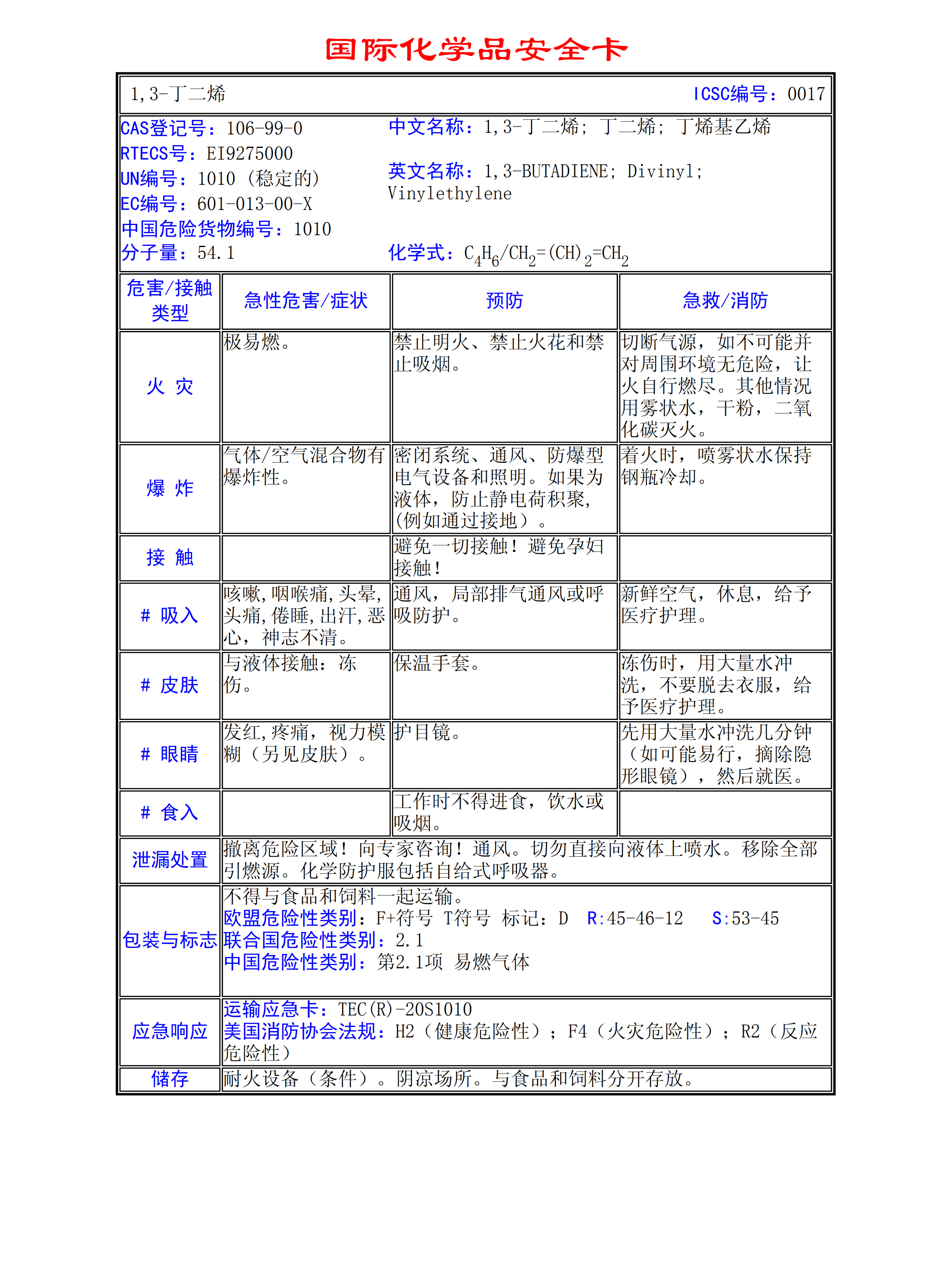1,3-丁二烯MSDS
