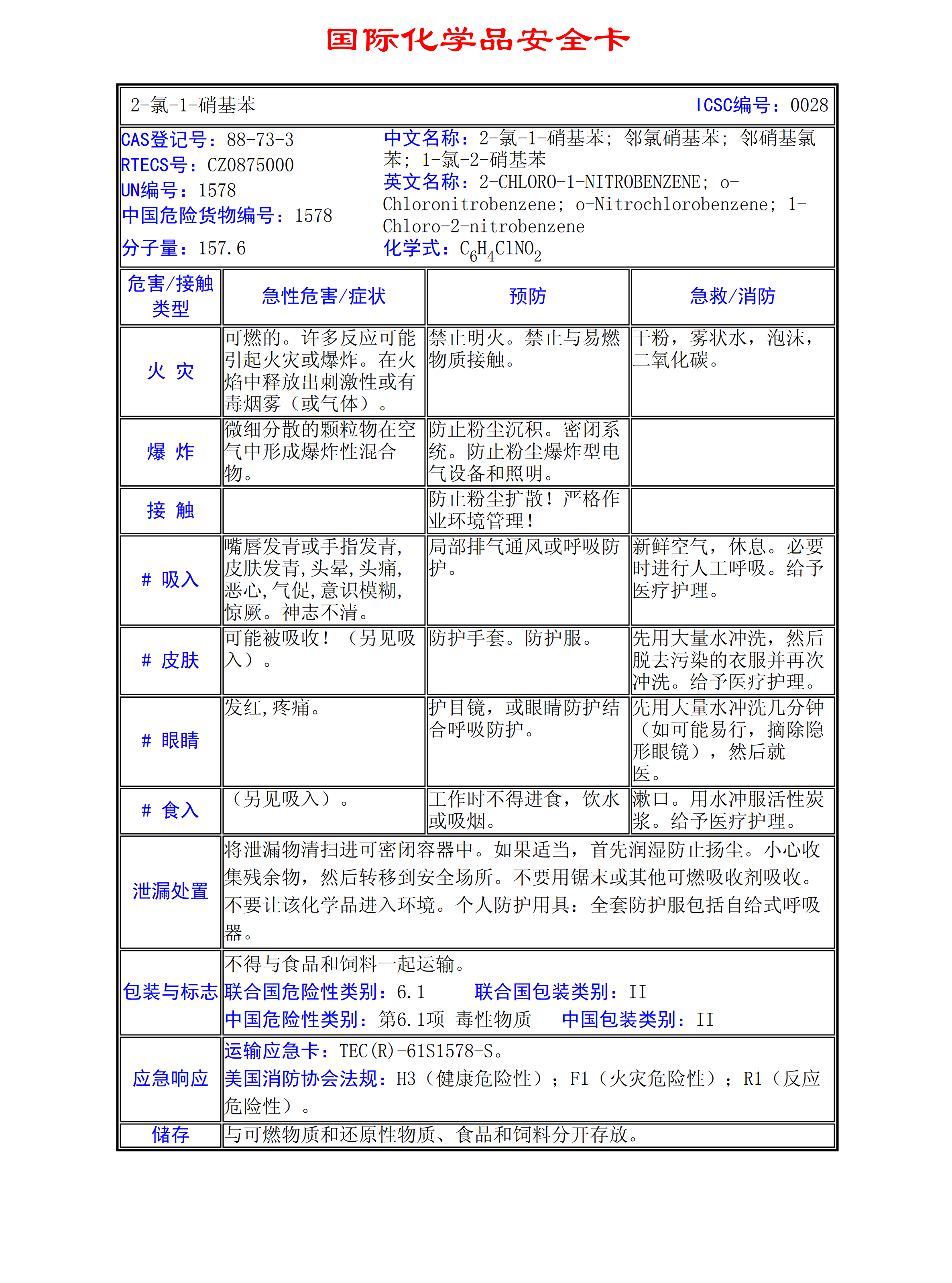 2-氯-1-硝基苯MSDS