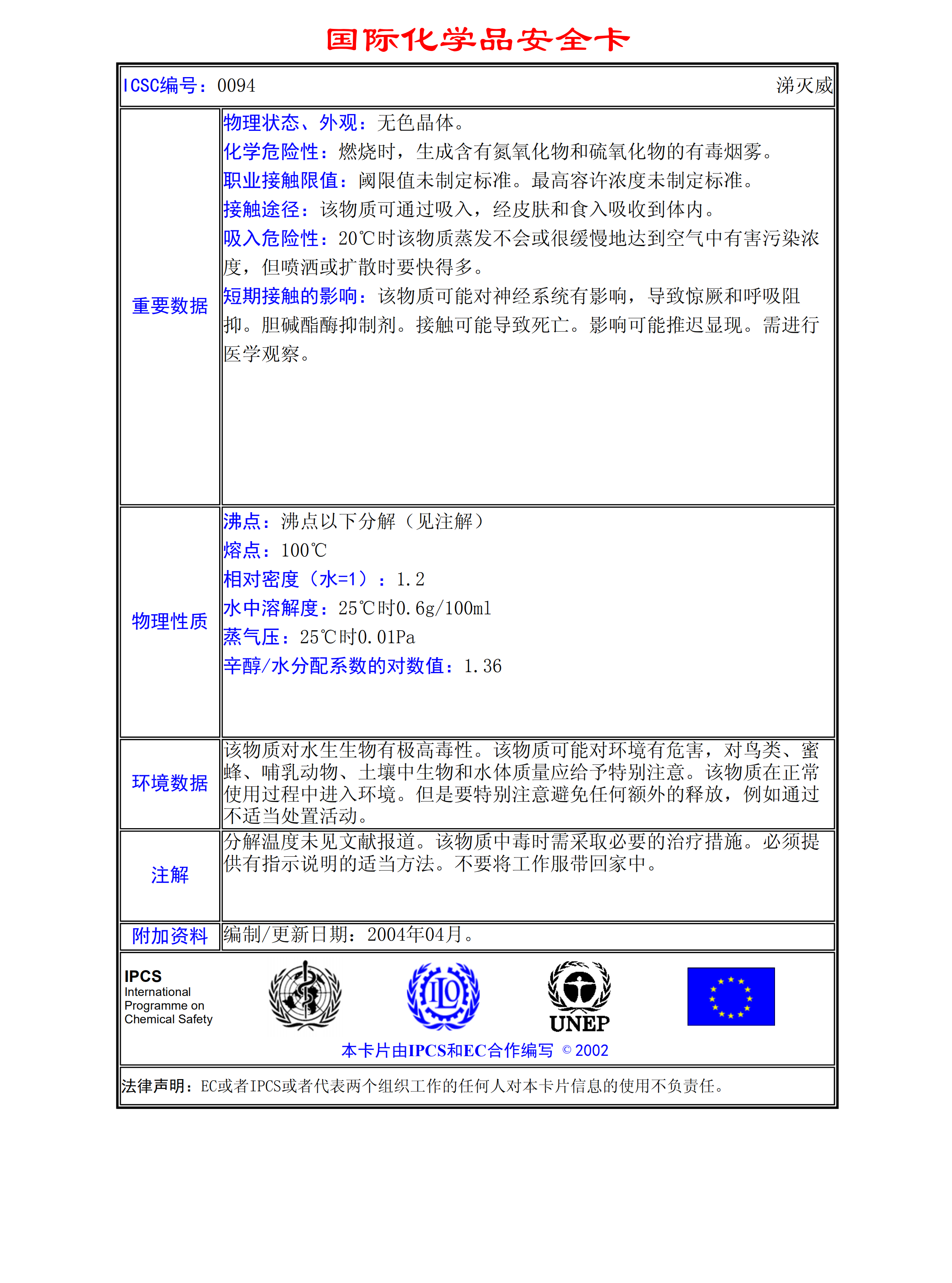 涕滅威MSDS
