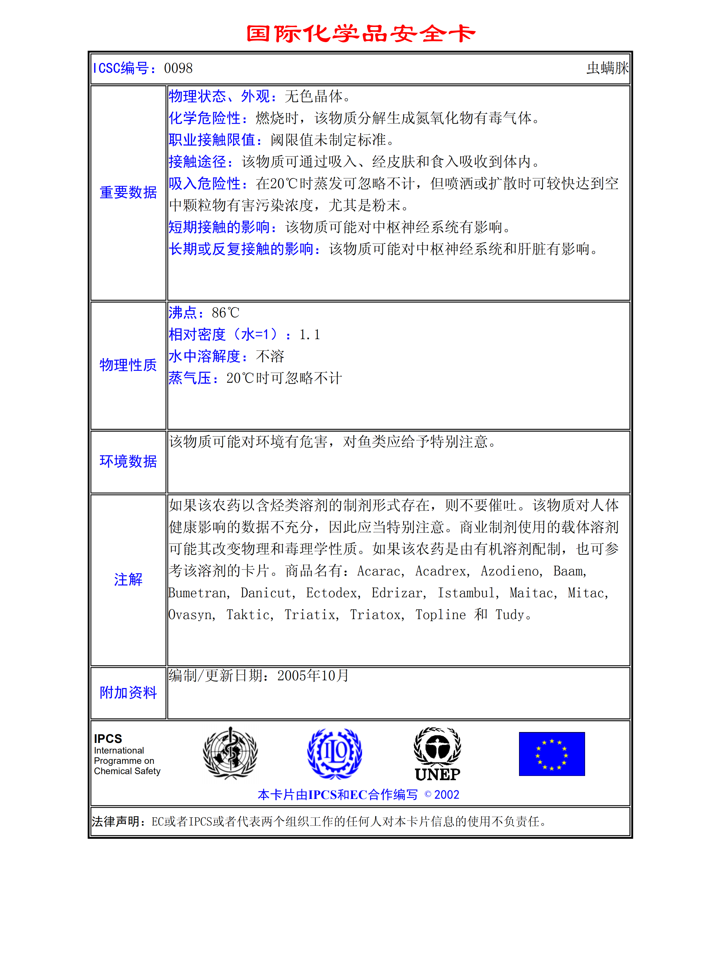 蟲螨脒MSDS