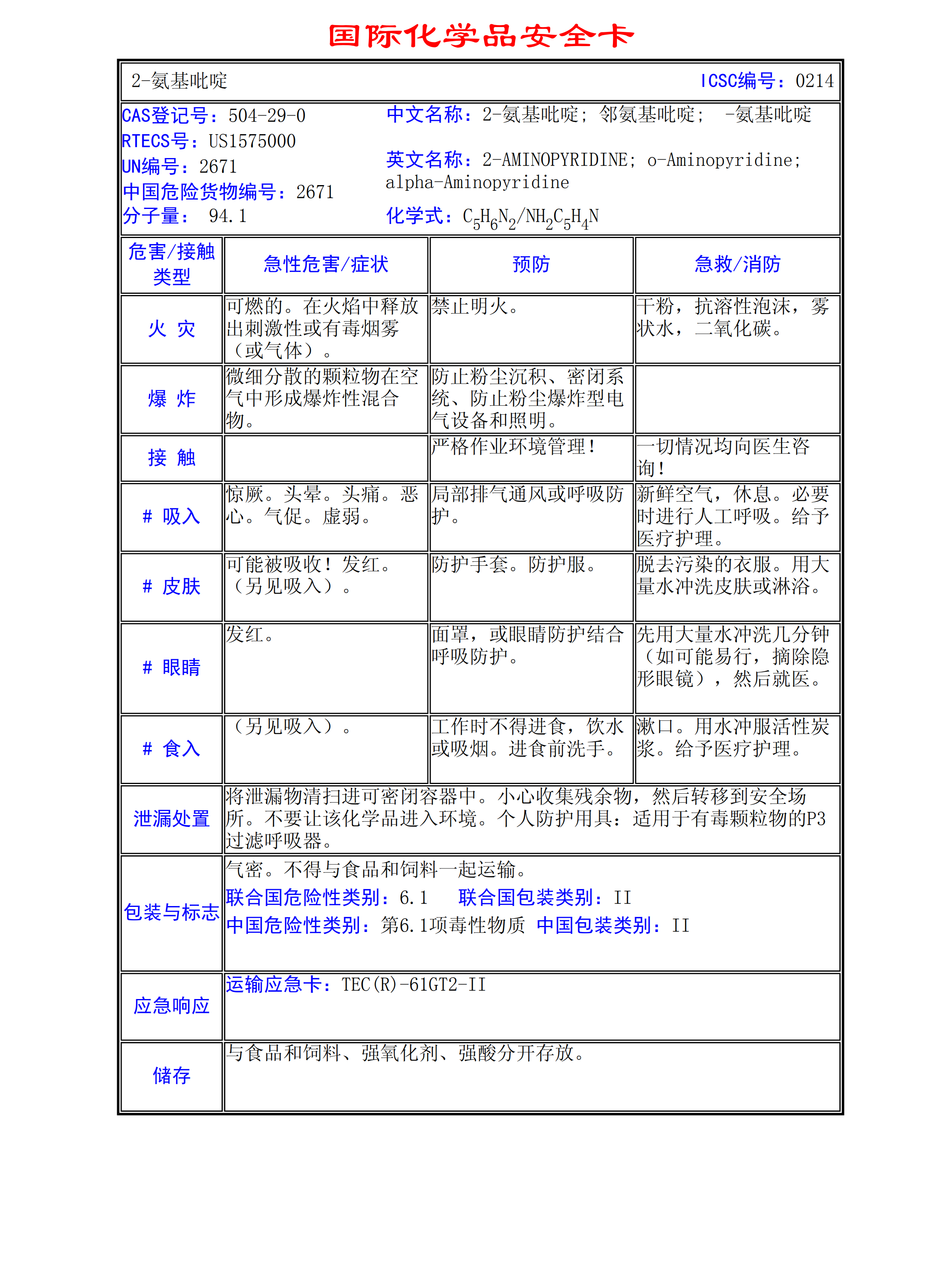 2-氨基吡啶MSDS