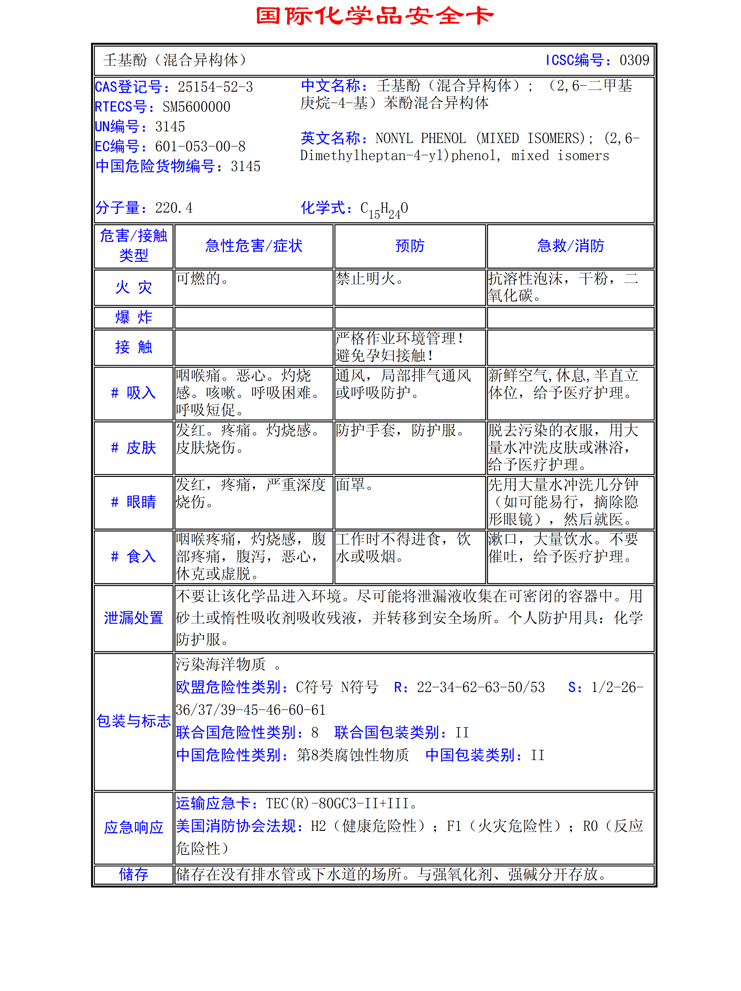 壬基酚(混合異構(gòu)體)MSDS
