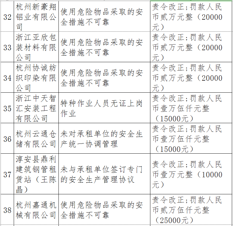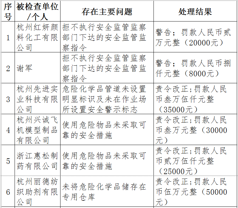 近日,杭州市應(yīng)急管理局對50多家被行政處罰的企業(yè)(個人)進行曝光