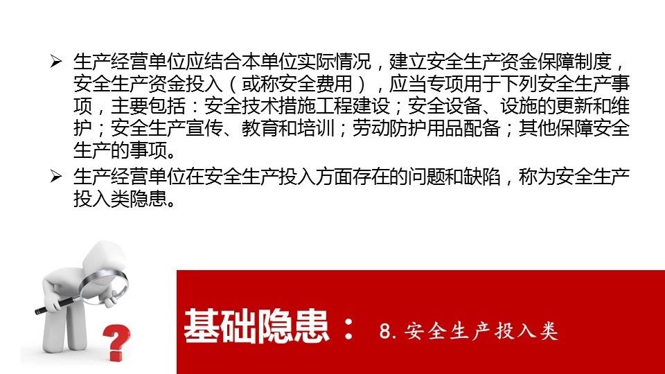 安全 生產(chǎn) 投入 | 決策機構(gòu)、主要負(fù)責(zé)人或者個人經(jīng)營的投資人不依照本法規(guī)定保證安全生產(chǎn)所必需的資金投入,致使生產(chǎn)經(jīng)營單位不具備安全生產(chǎn)條件的 | 責(zé)令限期改正,提供必需的資金 | 責(zé)令生產(chǎn)經(jīng)營單位停產(chǎn)停業(yè)整頓 |