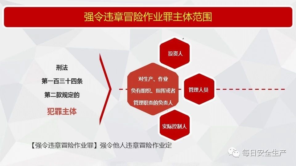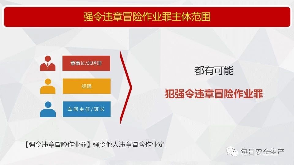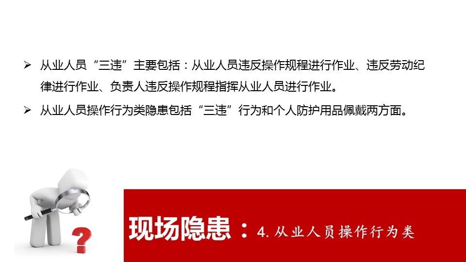作業(yè) 安全 | 進行爆破、吊裝以及國務(wù)院安全生產(chǎn)監(jiān)督管理部門會同國務(wù)院有關(guān)部門規(guī)定的其他危險作業(yè),未安排專門人員進行現(xiàn)場安全管理的 | 責(zé)令限期改正,可以處十萬元以下的罰款 | 責(zé)令停產(chǎn)停業(yè)整頓,并處十萬元以上二十萬元以下的罰款,對其直接負(fù)責(zé)的主管人員和其他直接責(zé)任人員處二萬元以上五萬元以下的罰款 |