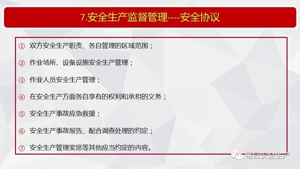 27 | 生產(chǎn)經(jīng)營單位未與承包單位、承租單位簽訂專門的安全生產(chǎn)管理協(xié)議或者未在承包合同、租賃合同中明確各自的安全生產(chǎn)管理職責(zé),或者未對承包單位、承租單位的安全生產(chǎn)統(tǒng)一協(xié)調(diào)、管理的 |