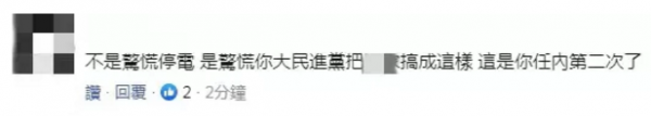 也有網友怒斥民進黨當局:不是驚慌停電,是驚慌你民進黨把臺灣搞成這樣,這是你任內第二次了?!?/p>